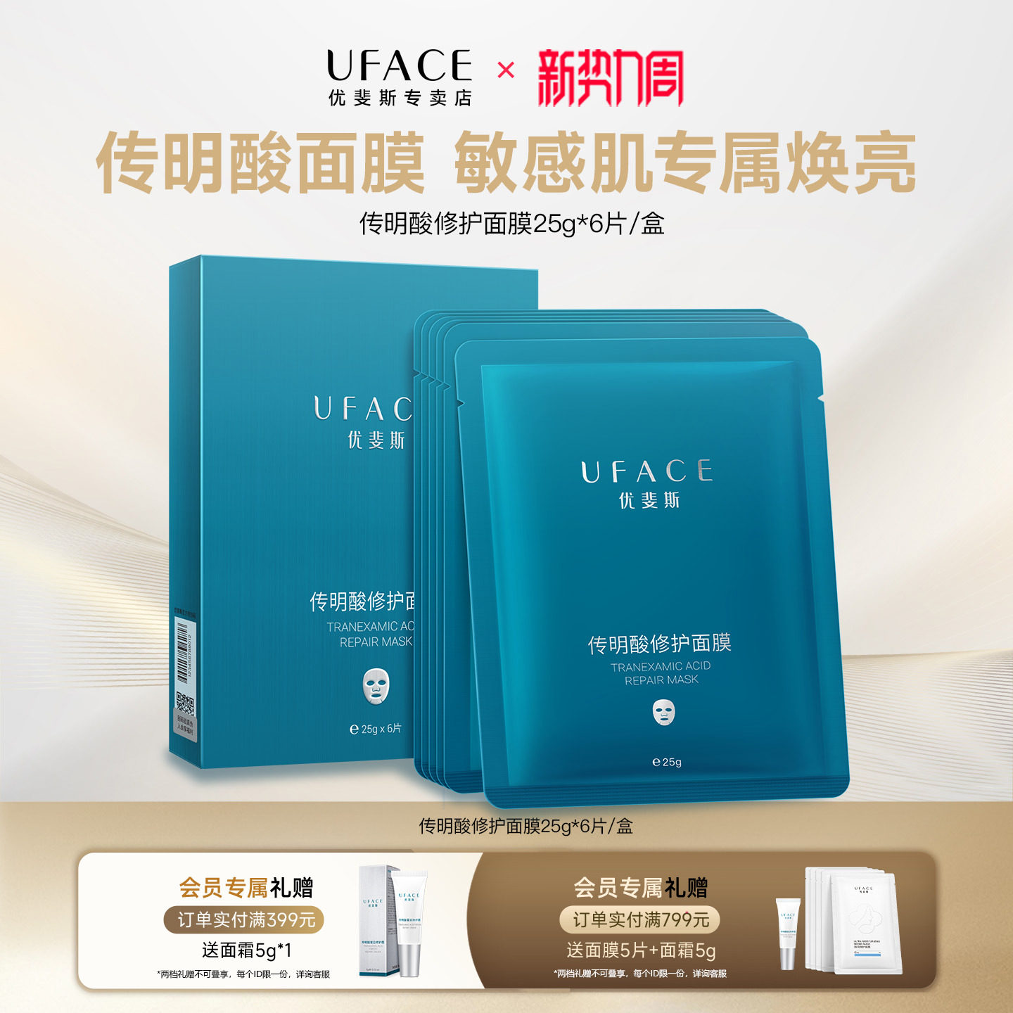 优斐斯传明酸修护面膜补水保湿改善肌肤暗沉屏障修护提亮肤色正品