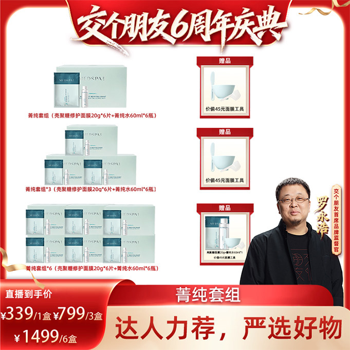 【交个朋友6周年庆典】法国美帕套装菁纯水壳聚糖面膜6组/盒滋养