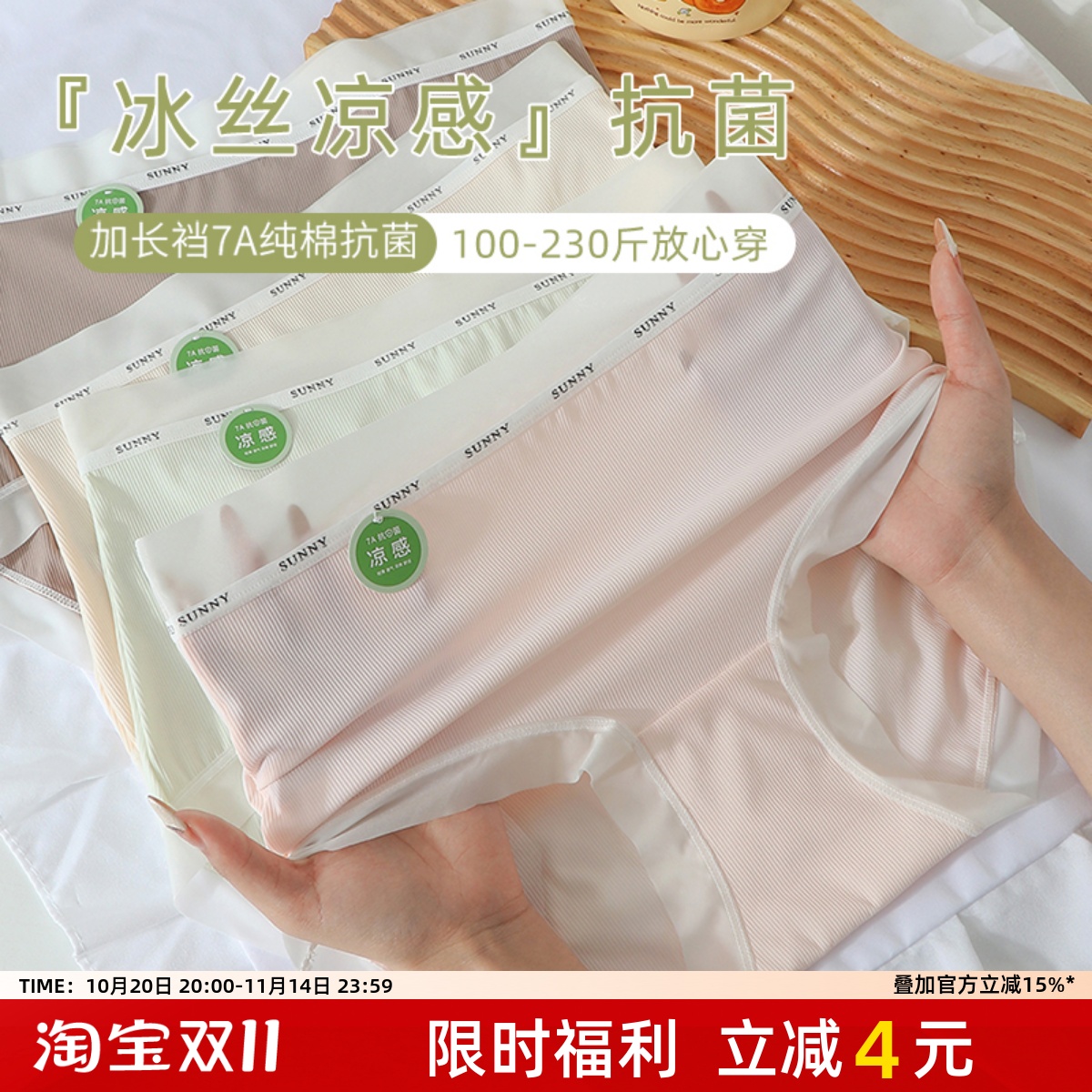 凉感冰丝大码内裤女胖mm200斤纯棉抗菌档7A级超薄速干无痕面膜裤