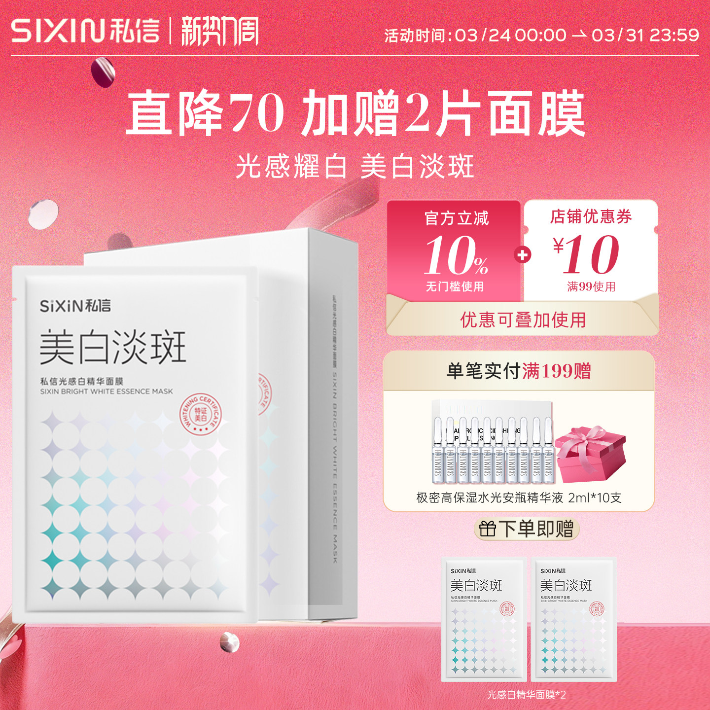 私信光感白精华美白面膜38ml*7美白补水提亮肤色减黄烟酰胺精华
