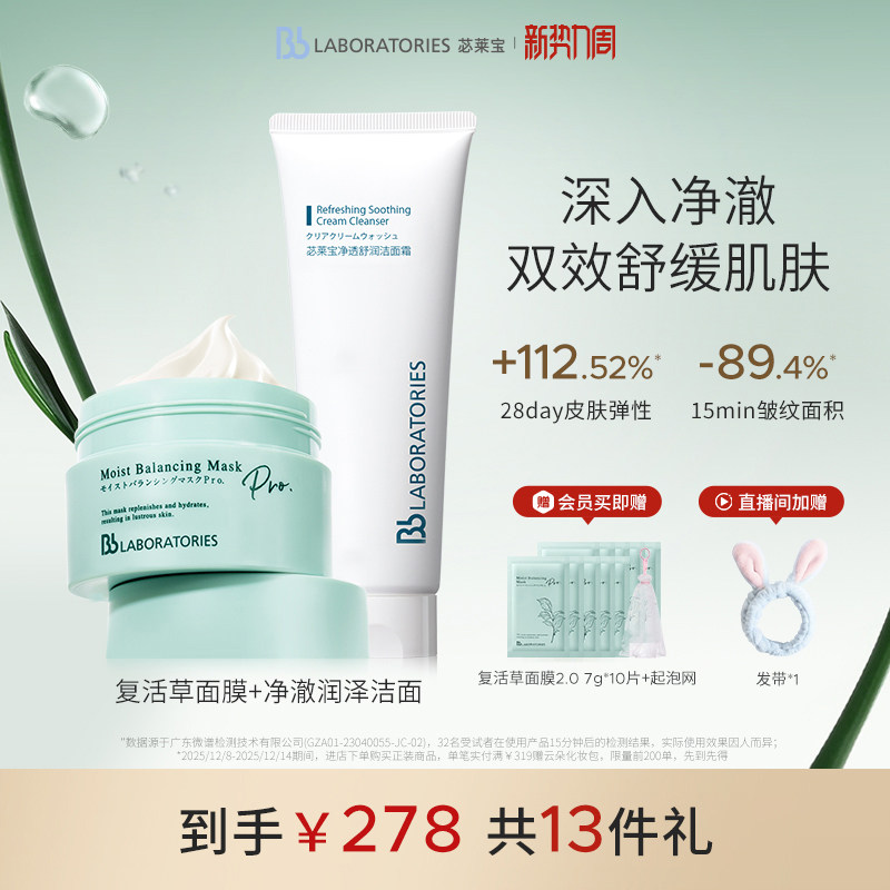 【官方正品】BbLAB苾莱宝复活草面膜2.0保湿修护洗面奶100g套组