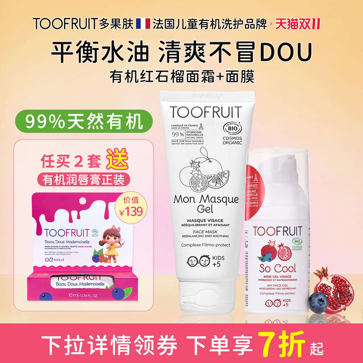 toofruit多果肤青少年护肤品套装清爽补水面霜青春期男女调理面膜