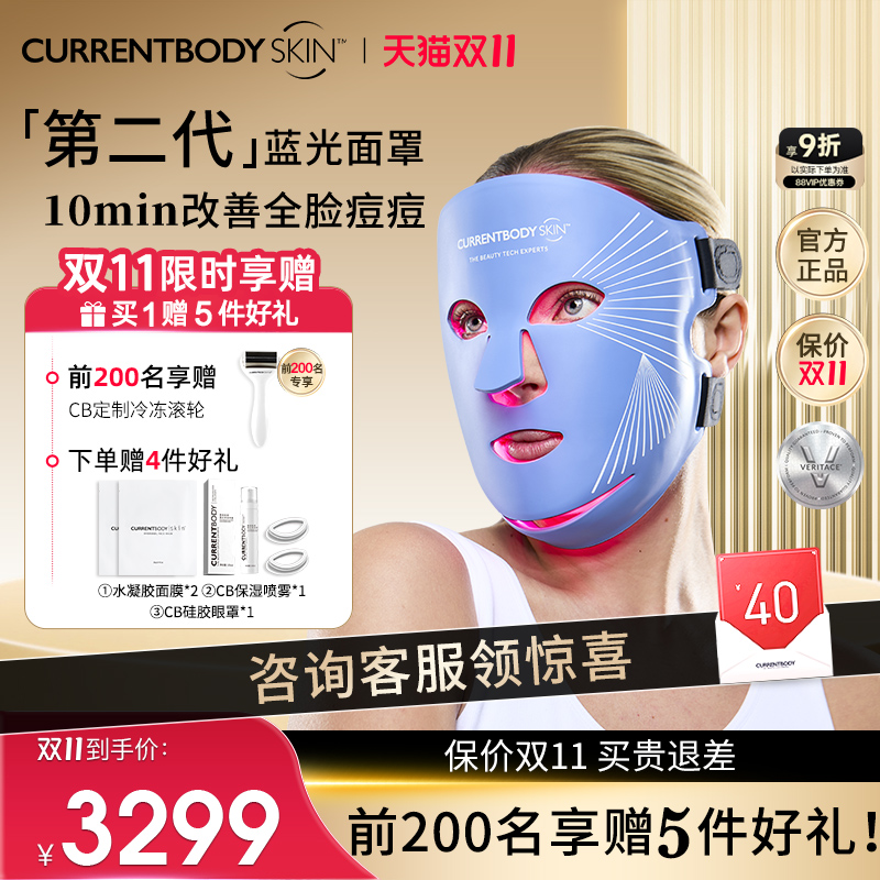 CURRENTBODY2代蓝光面膜仪祛痘控油大排灯面罩美容仪