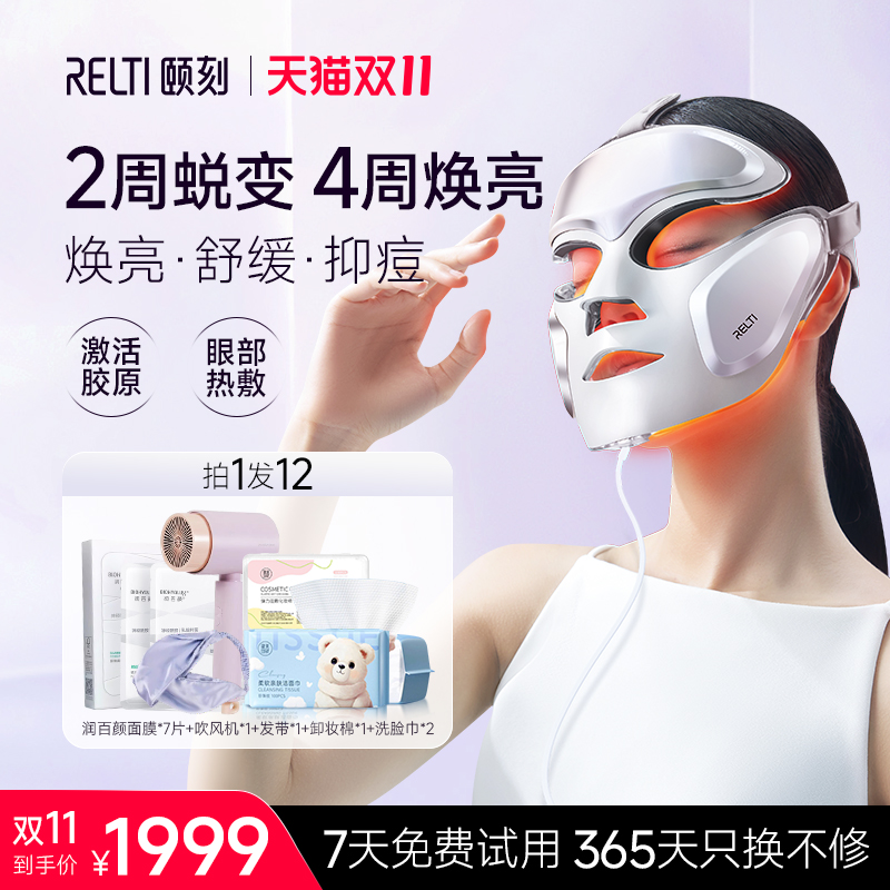 RelTi颐刻告白面罩美容仪大排灯光子嫩肤仪焕白祛痘红蓝光面膜仪