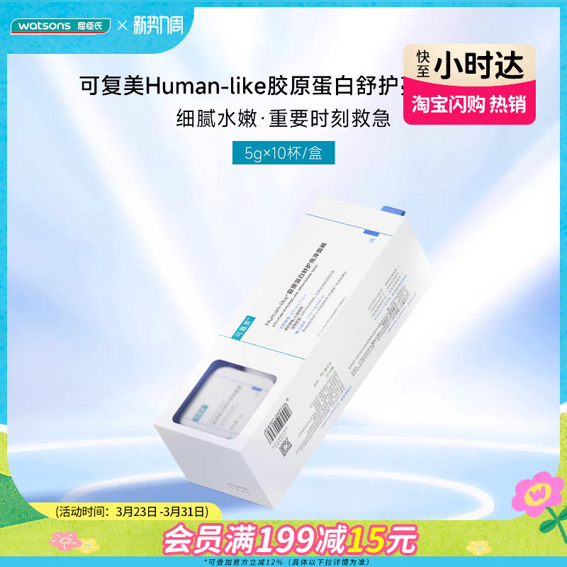 新品屈臣氏可复美Human-like胶原蛋白舒护亮泽面膜5克*10杯保湿