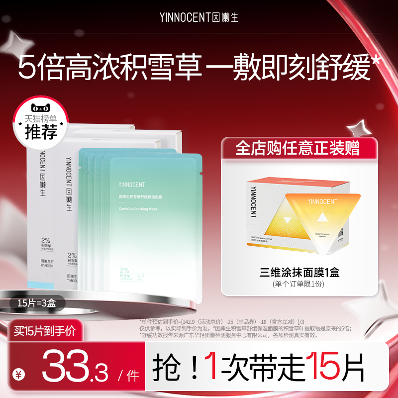 因嫩生积雪草面膜补水保湿舒缓油皮痘肌泛红护肤贴片男女正品
