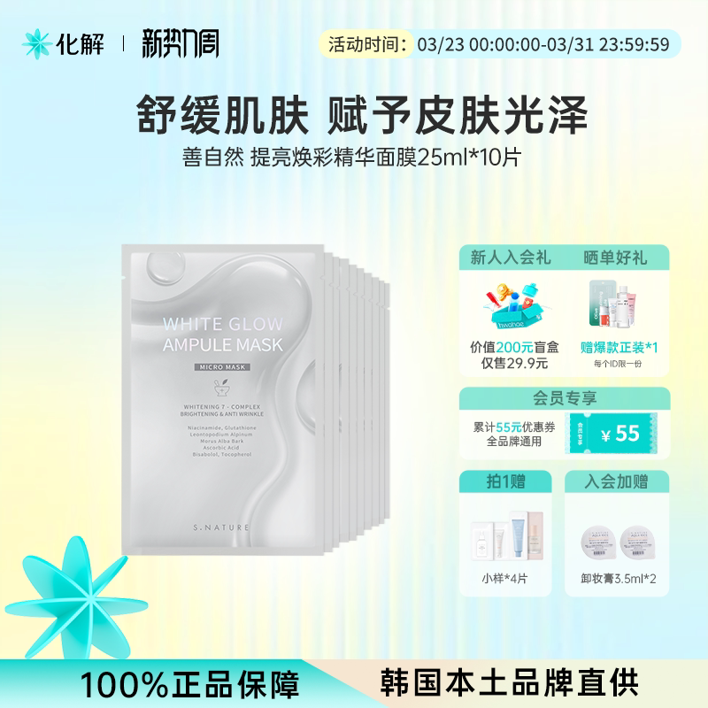 韩国化解丨SNATURE善自然提亮焕彩精华面膜10片oliveyoun【临期】