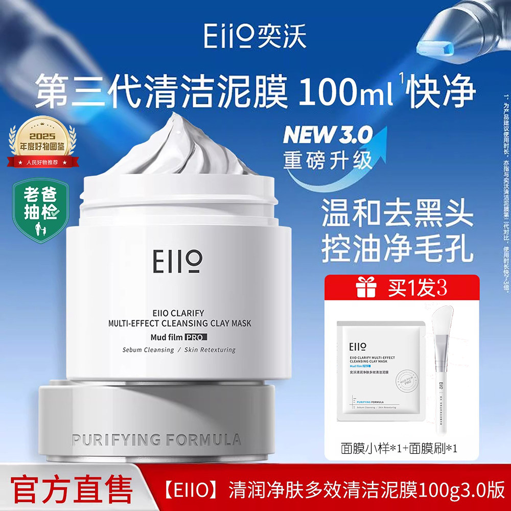 eiio清洁泥膜抛光焕亮去黑白头深层清洁毛孔涂抹面膜ello官方正品