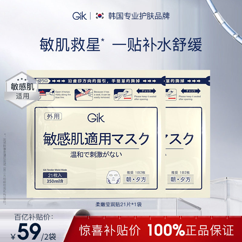 【59元42片】Gik 敏感莹润贴面膜韩国进口敏感肌补水保湿韩国