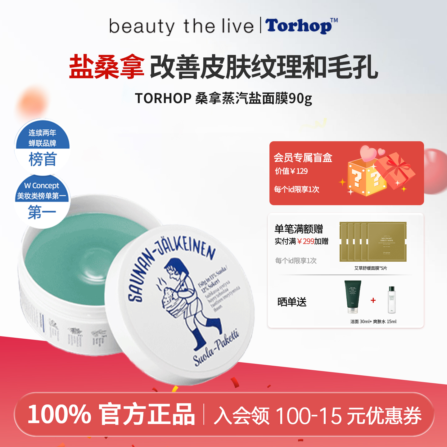 韩国TORHOP桑拿蒸汽盐面膜深层清洁去黑头角质补水保湿收缩毛孔