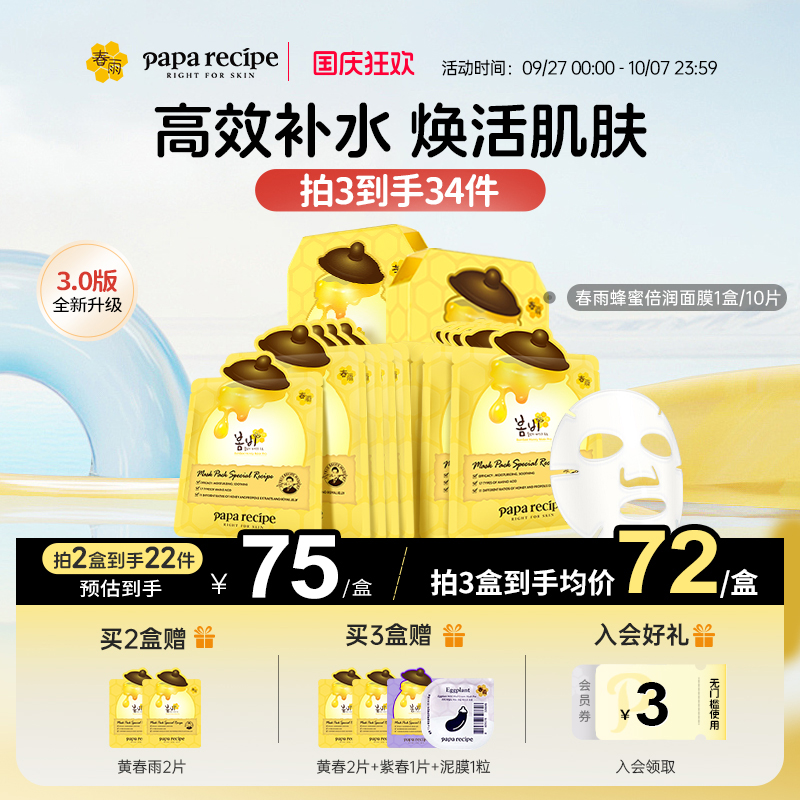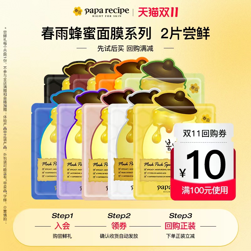 【U先试用】韩国paparecipe春雨蜂蜜面膜25g*2片+10元回购券