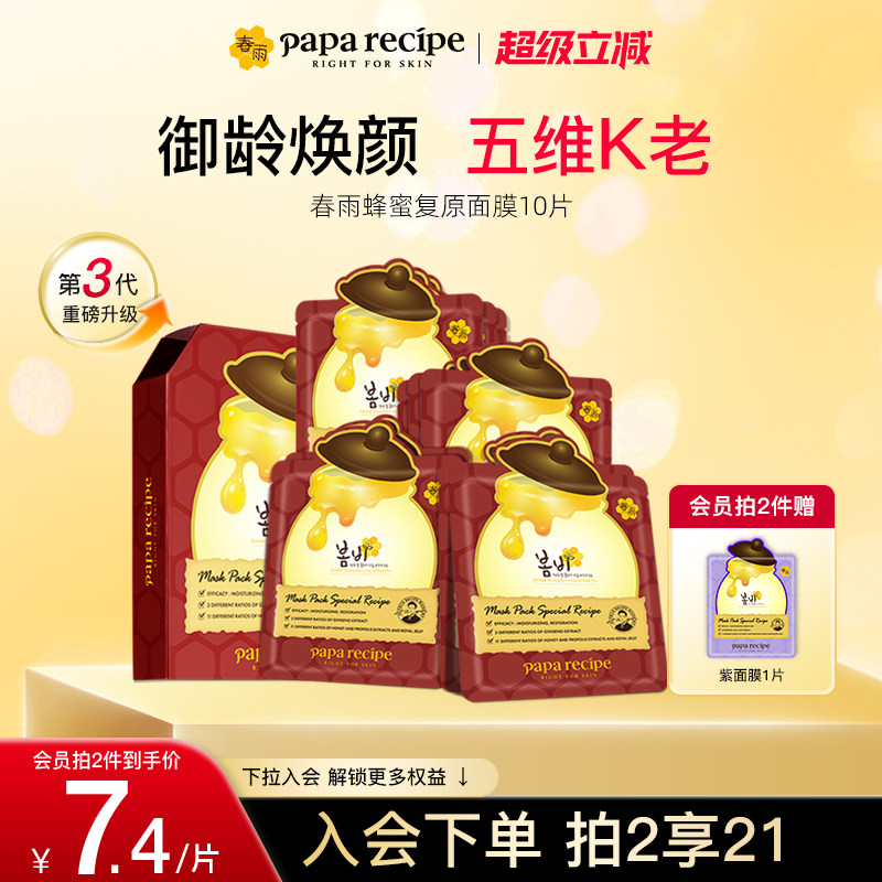 韩国paparecipe红春雨蜂蜜复原油敷面膜人参保湿紧致官方正品10片