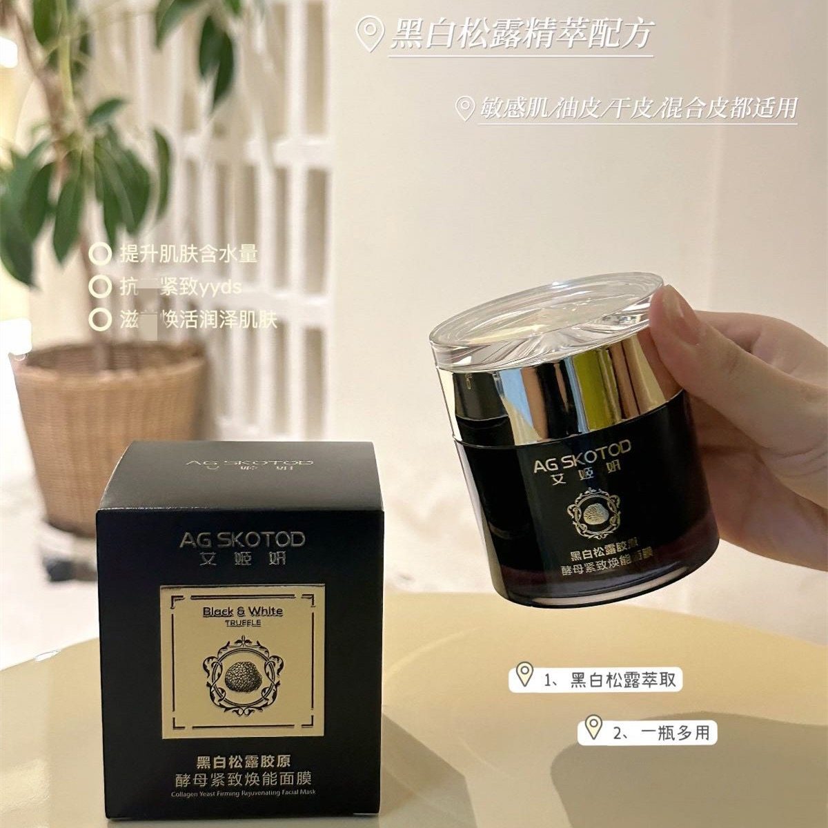 艾姬妍黑白松露胶原酵母睡眠面膜免洗保湿滋润抗皱保湿秋冬护肤