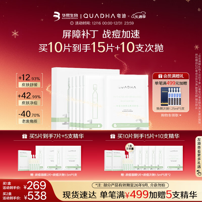 夸迪多维肌因焕活修护战痘面膜5片净痘【部分产品有效期至26年9月】