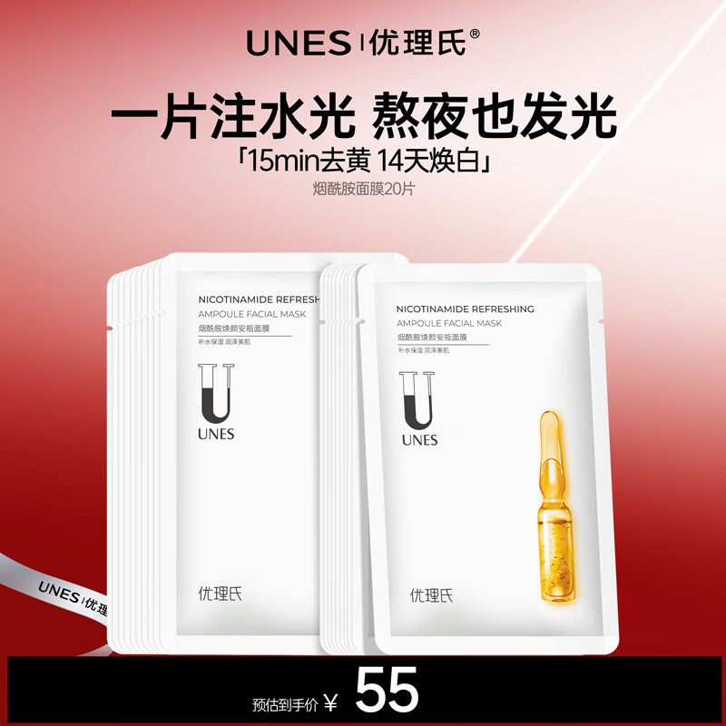 优理氏(UNES)玻尿酸熬夜面膜深层补水保湿晒后修护滋养护肤锁水嫩肤改善干燥 烟酰胺面膜20片
