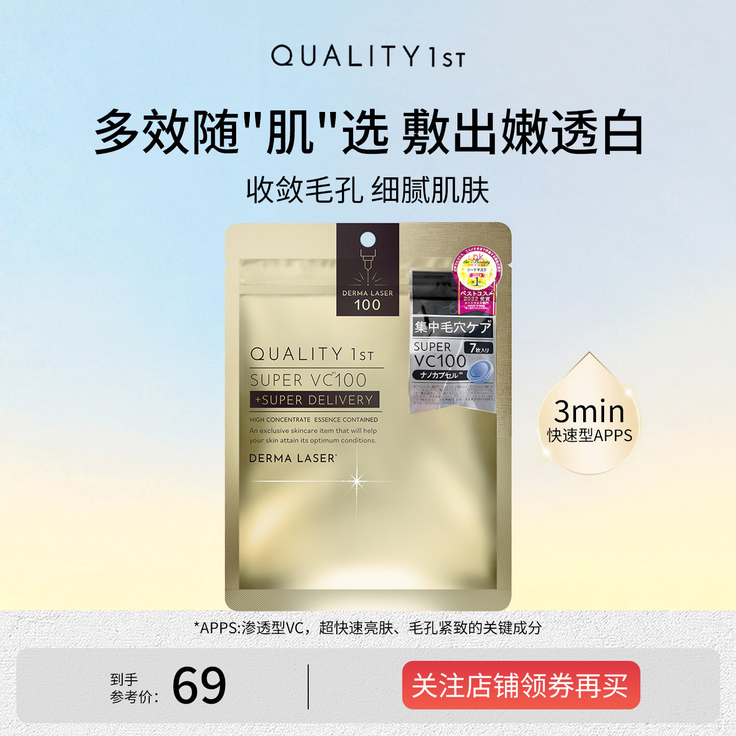QualityFirst皇后的秘密VC面膜紧致透亮滋润保湿精华修护维稳舒缓