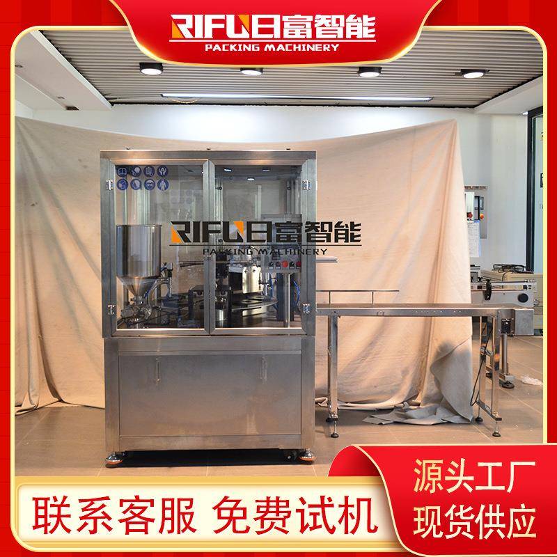 自动面膜液灌装封口机酸奶果冻塑杯封口机转盘式一出一塑杯机