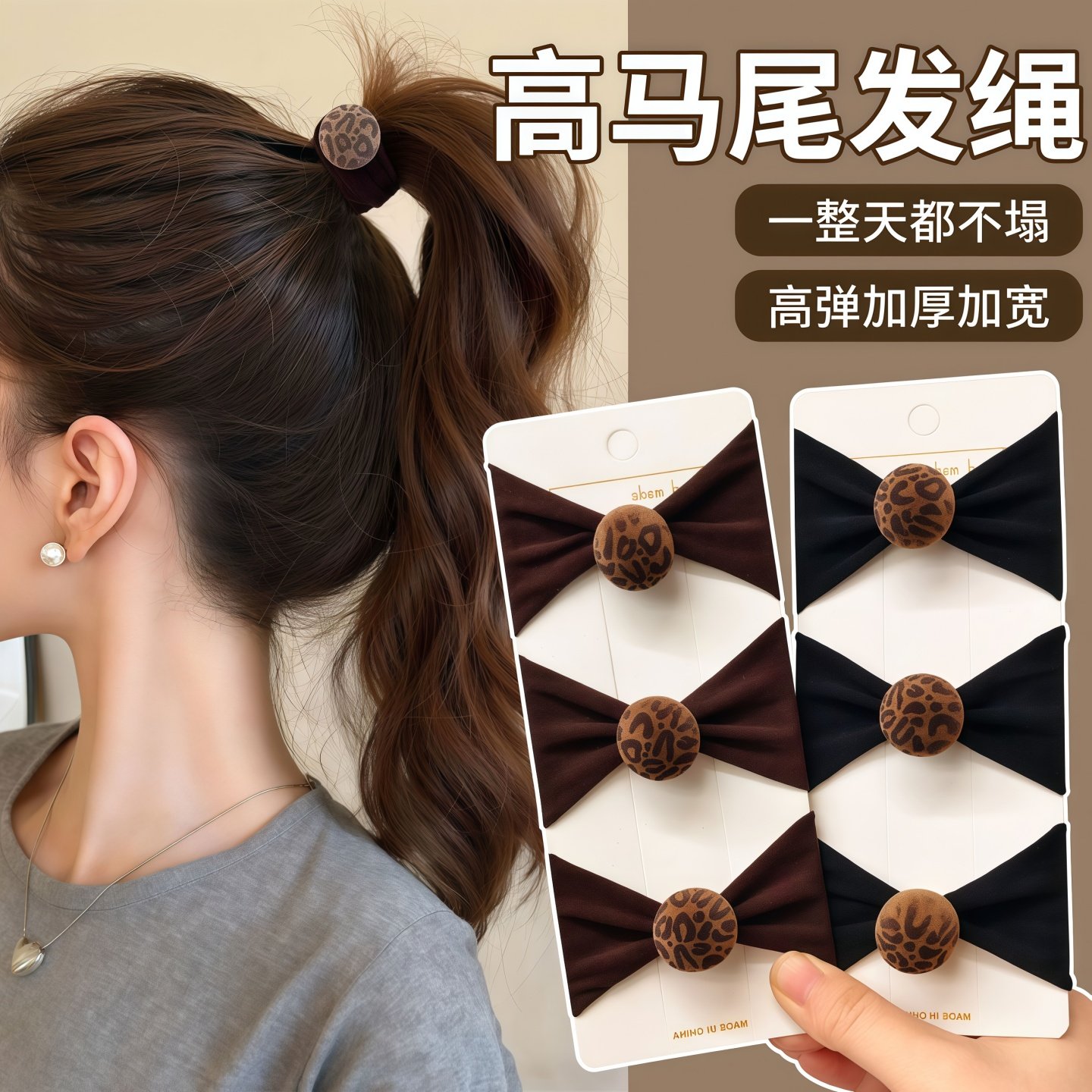 韩系植绒豹纹面膜发圈女高级感马尾球球毛巾圈秋冬复古头绳橡皮筋