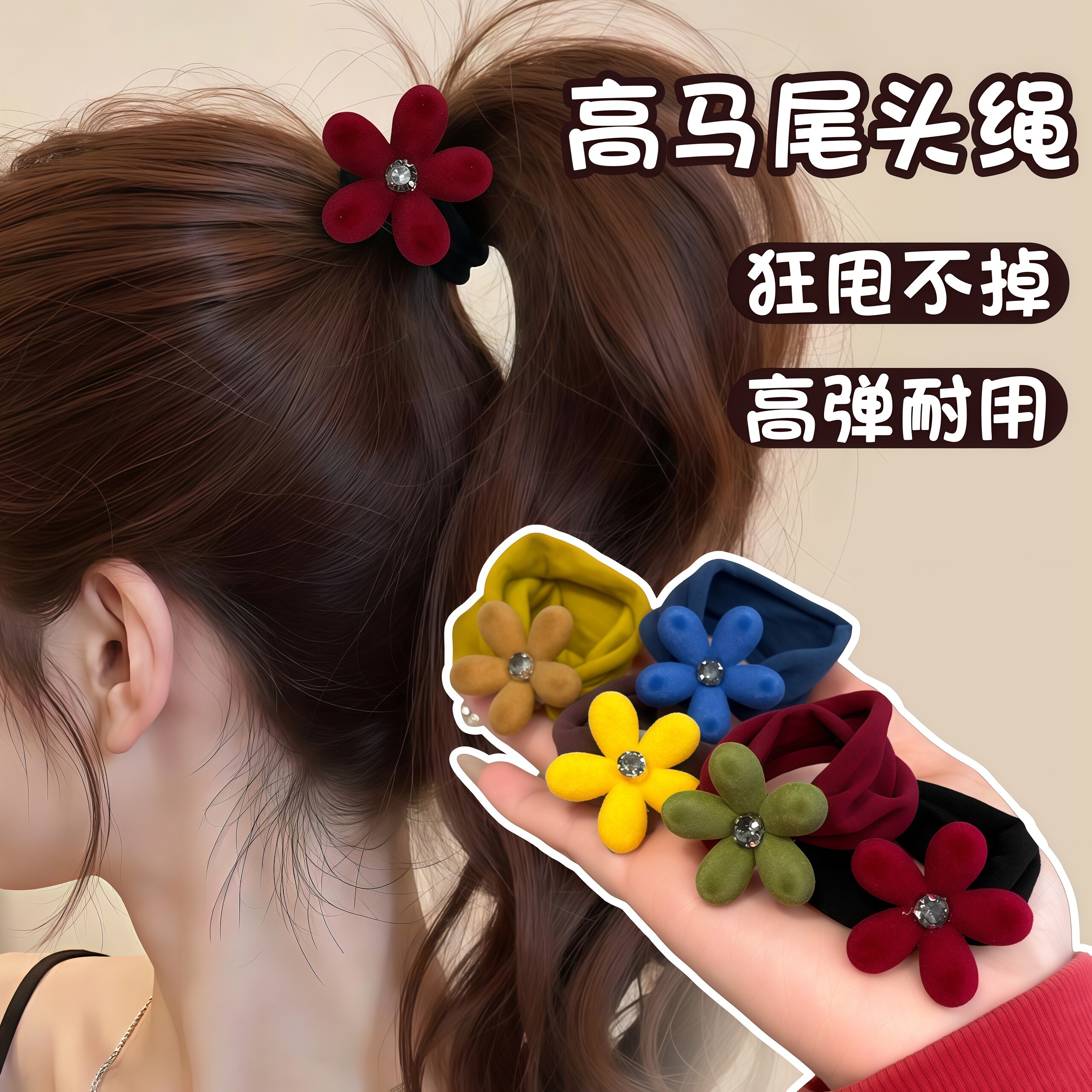植绒花朵面膜发圈女加宽高弹力耐用低马尾头绳丸子头发绳秋冬头饰