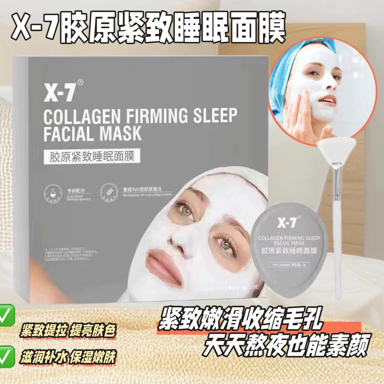 X7胶原紧致睡眠面膜十级磨皮去黄细毛孔均匀肤色回复晶透柔嫩v脸