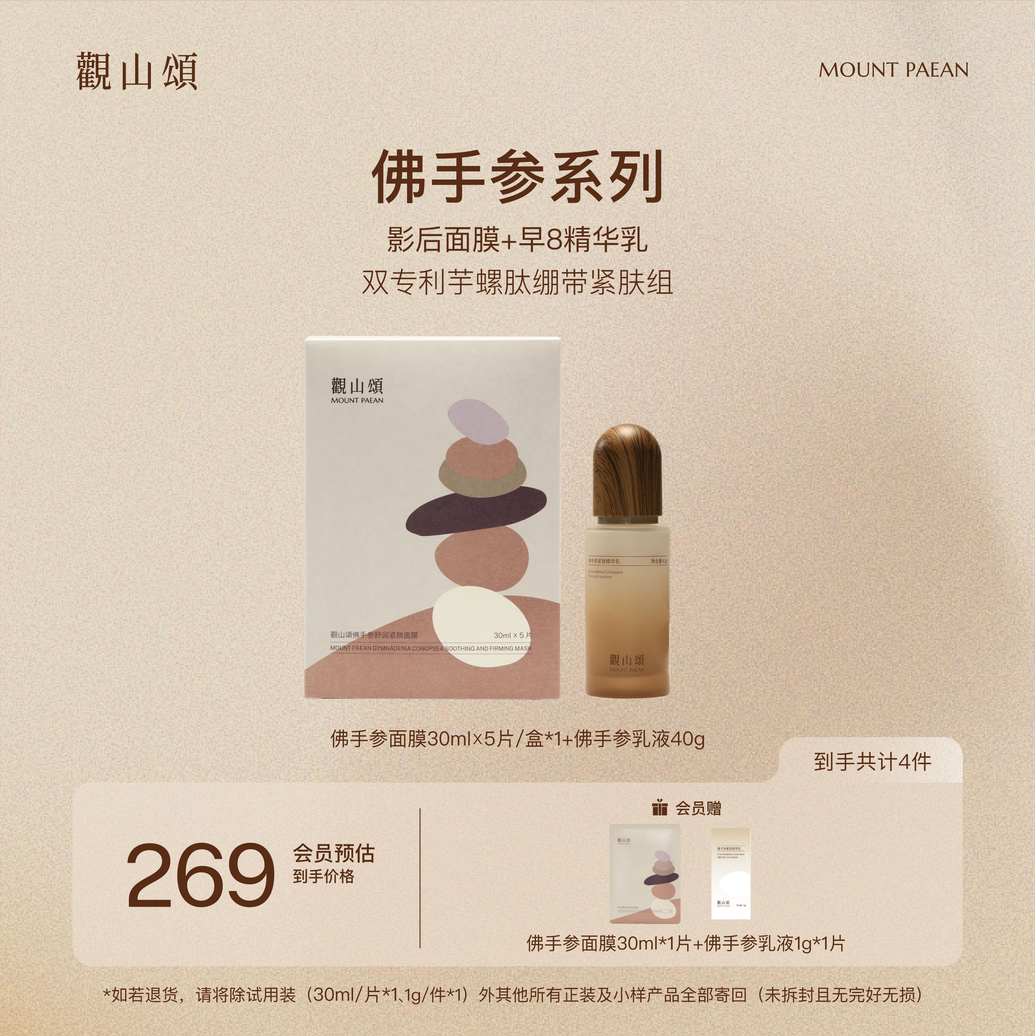 观山颂·佛手参「早8精华乳」+「影后面膜」套装紧致抗皱修护保湿