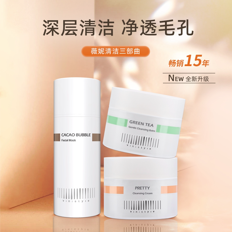 薇妮vinistyle化妆品 薇妮清洁三宝清洁三部曲绿茶清洁霜可可面膜