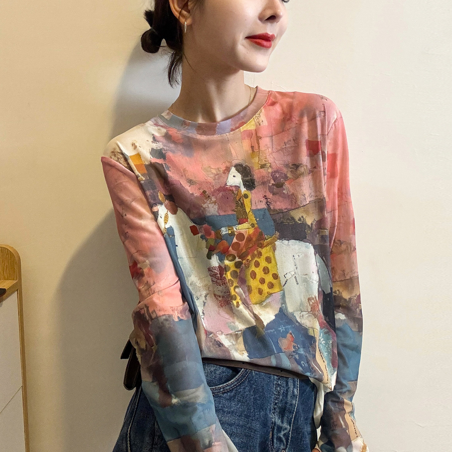 复古印花修身面膜T恤女欧洲站2026春装新款欧货女装时尚打底衫潮