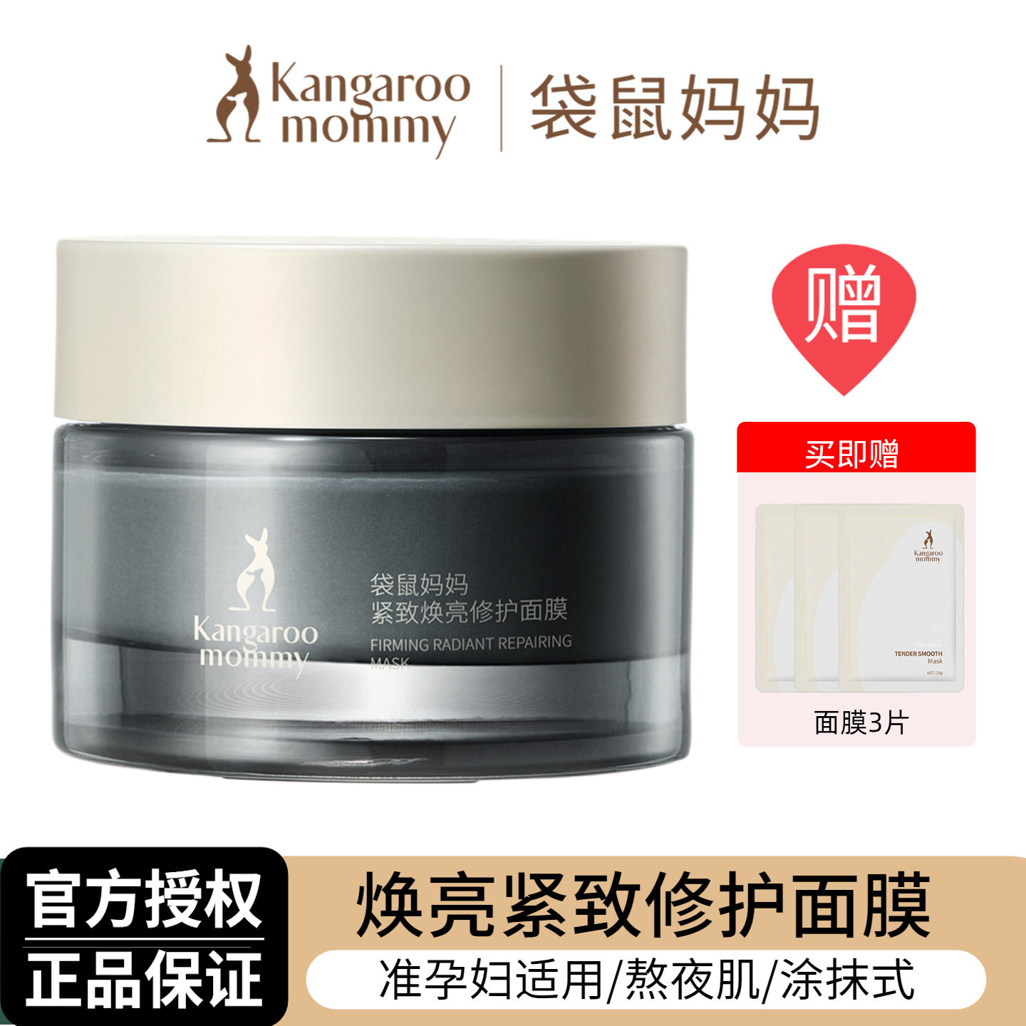 袋鼠妈妈紧致焕亮修护面膜50g 准孕妇补水保湿涂抹式熬夜面膜正品