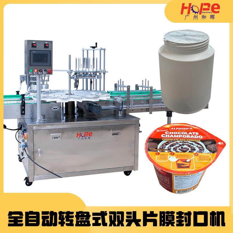 转盘式果冻杯簌口水灌装封口机全自动封膜液体漱口水面膜封杯机