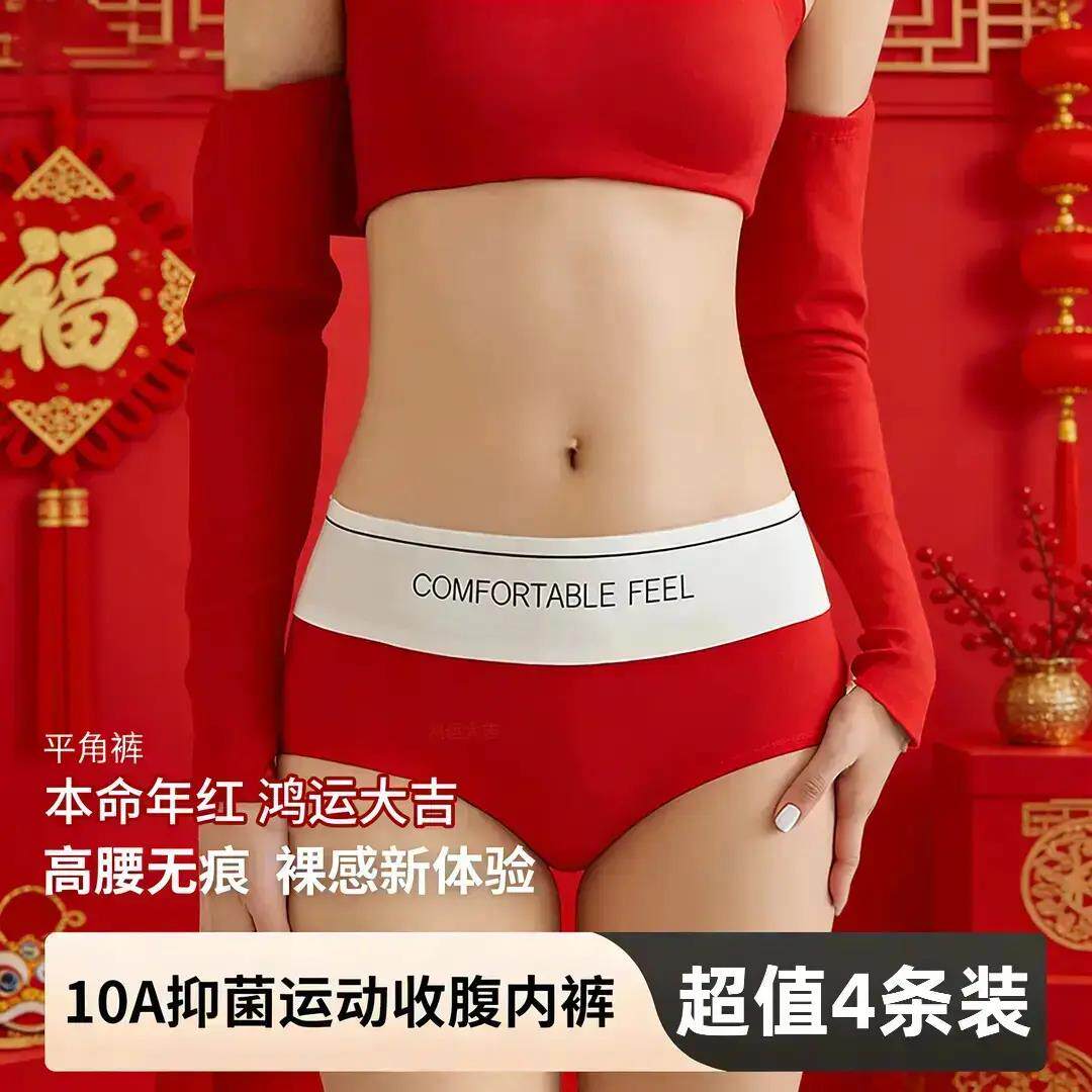 五条装星念梦90-125斤无缝美体面膜透气提臀少女三角裤中腰款5256