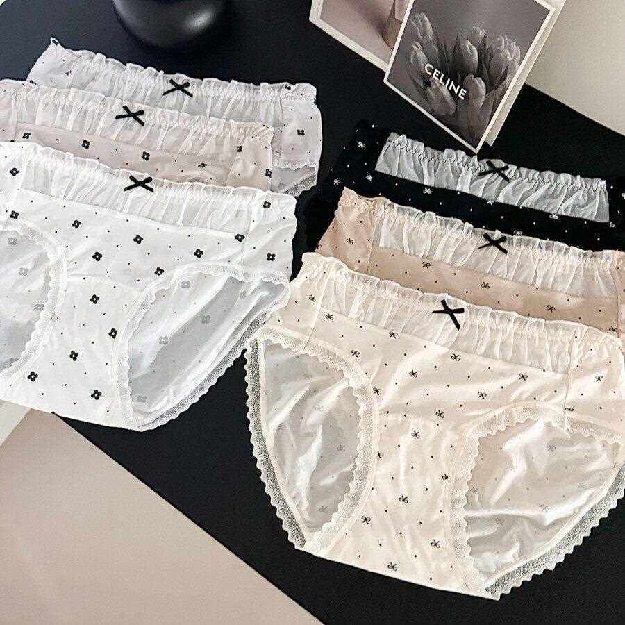 7A抑菌冰丝无痕内裤女夏裸感透气面膜裤薄款蕾丝蝴蝶结女士三角裤