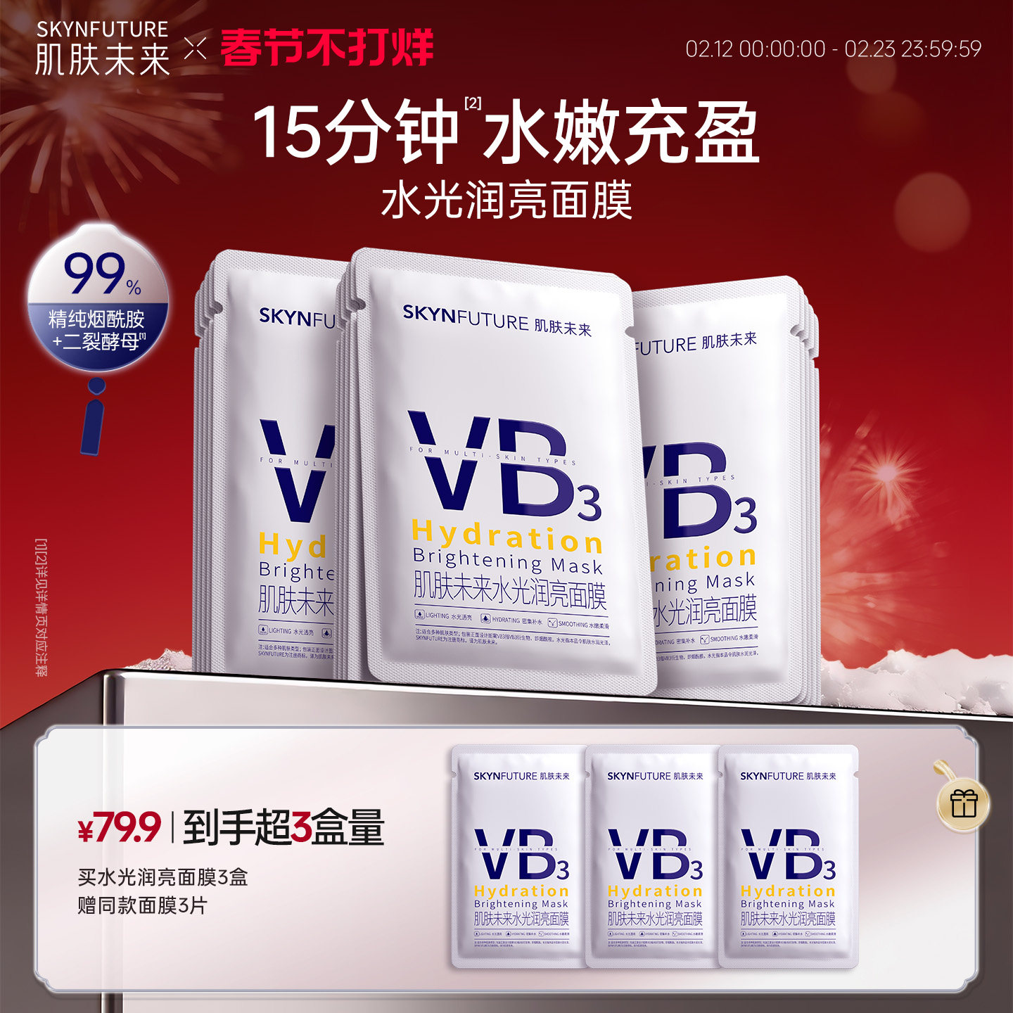 肌肤未来VB水光润亮面膜补水保湿温和舒缓含烟酰胺提亮肤色护肤品