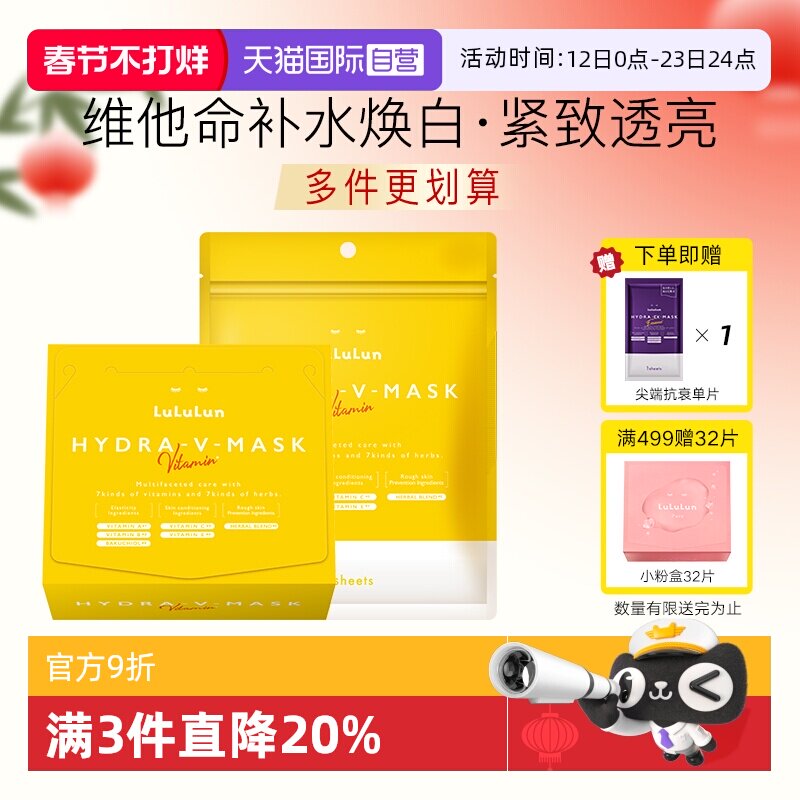 【自营】lululun深层补水晒后急救美提亮肌肤白去黄正气品vc面膜