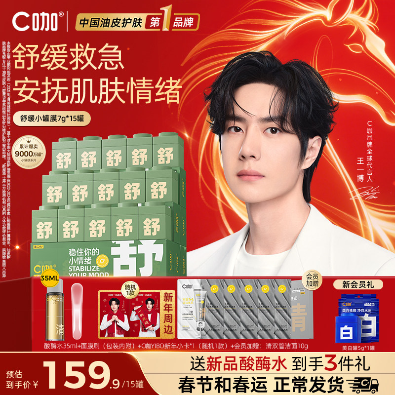 王一博同款C咖舒缓小罐膜积雪草精华涂抹面膜补水保湿修护官方