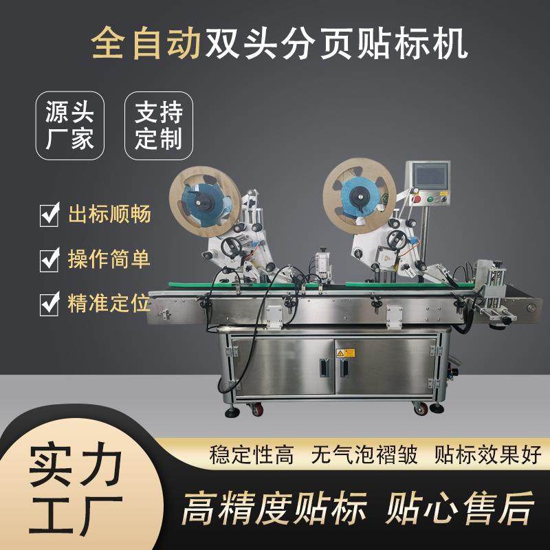 全自动双头分页平面贴标机含双侧封口化妆品包装盒面膜包装盒厂家