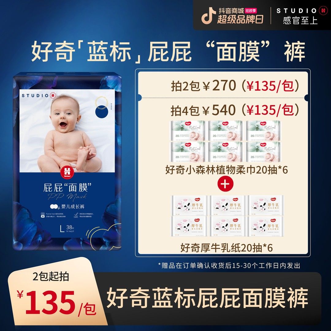 2包加赠蓝标屁屁面膜婴儿尿不湿纸尿裤拉拉裤奢护顶配NB-3XL-FX