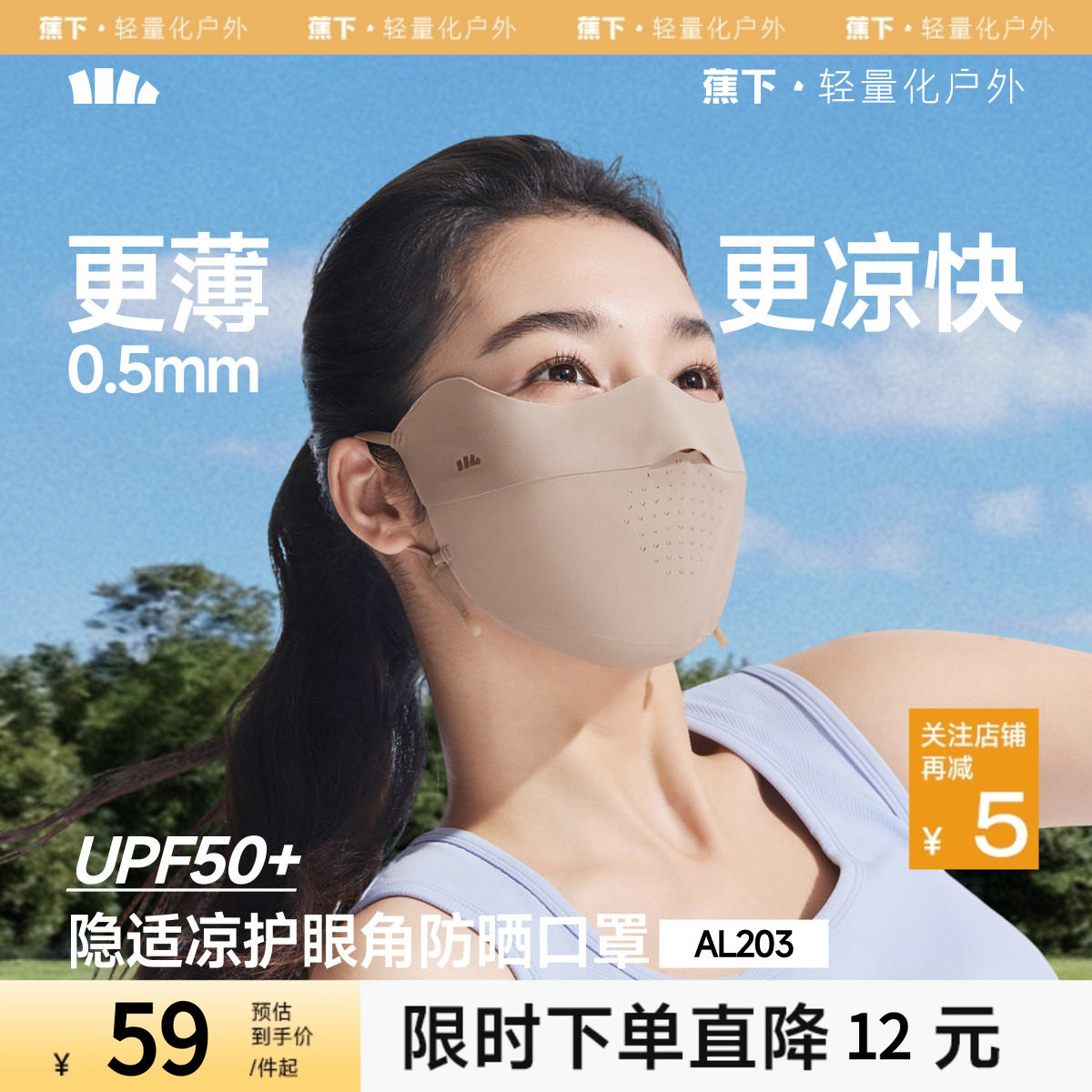 蕉下面膜防晒口罩女防紫外线高颜值遮阳医美轻薄透气骑行冰丝面罩