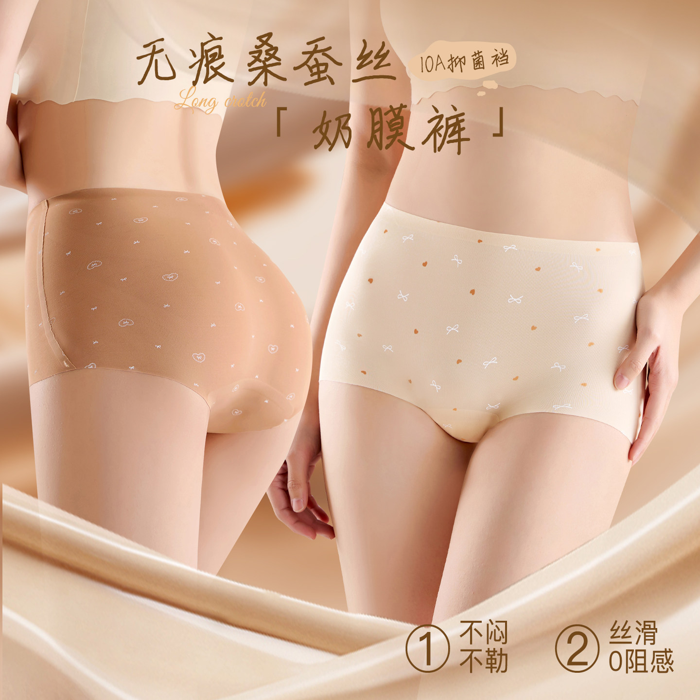 浪莎无痕中高腰女士内裤面膜裤10A抑菌桑蚕丝加长裆透气隐形三角
