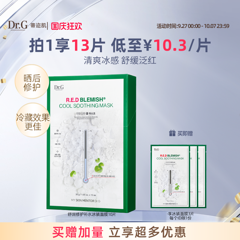 【晒后修护】DrG/drg舒润修护积雪草面膜补水保湿舒缓敏感肌10片