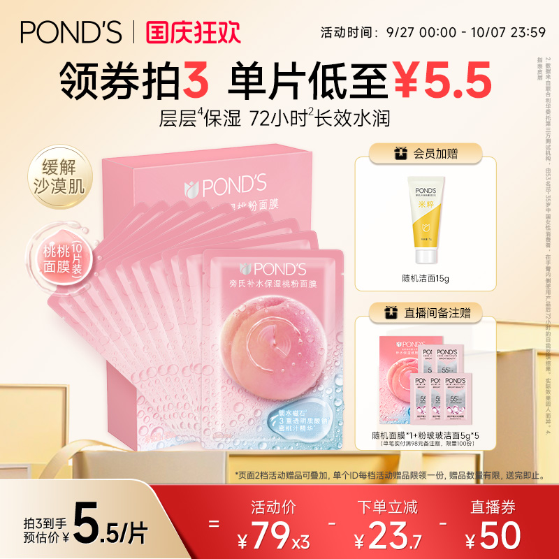 旁氏桃桃补水面膜保湿长效水润快速补水深层锁水保湿不紧绷官旗店