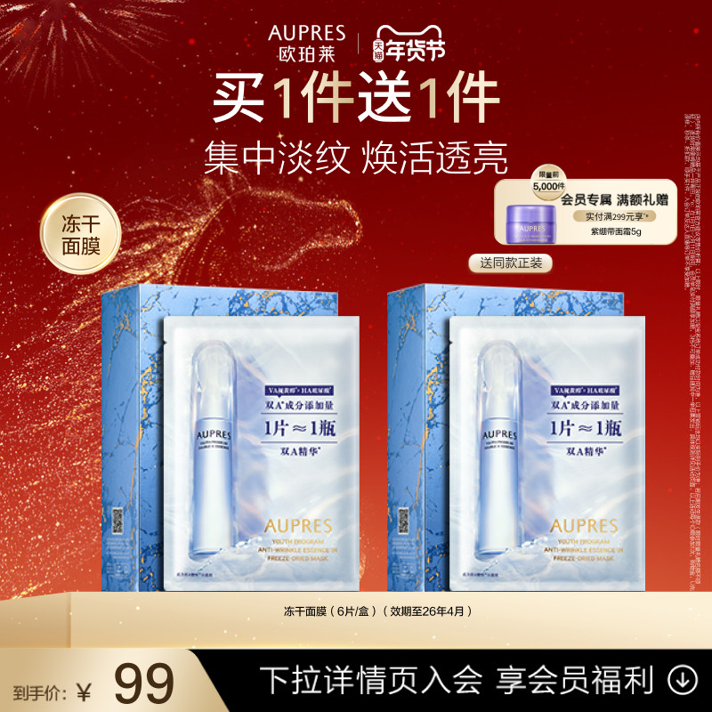 【新年礼物】欧珀莱臻粹轻龄集中淡纹冻干面膜(效期26年4月)