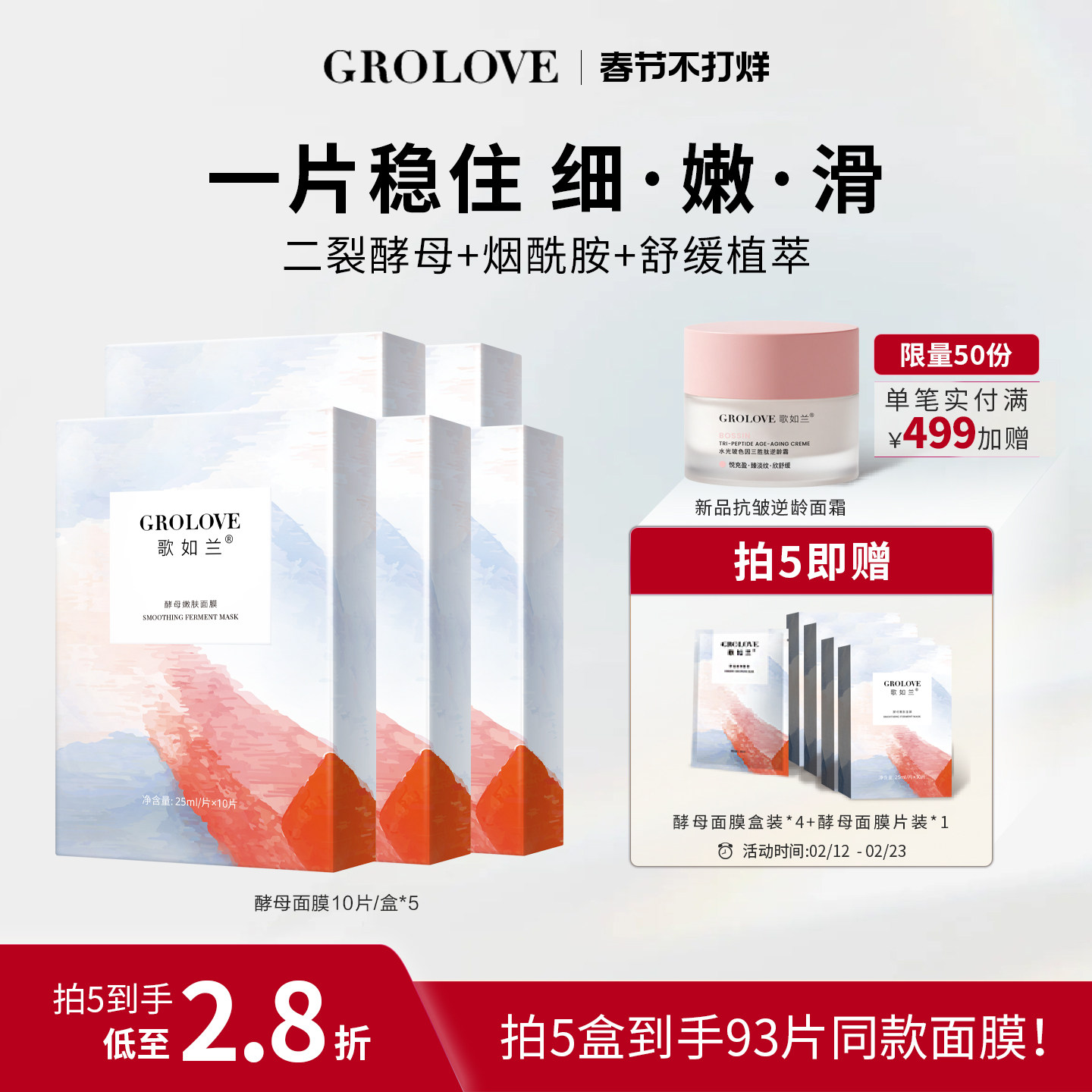 歌如兰酵母空气感贴片面膜肌底液熬夜舒缓补水保湿嫩肤