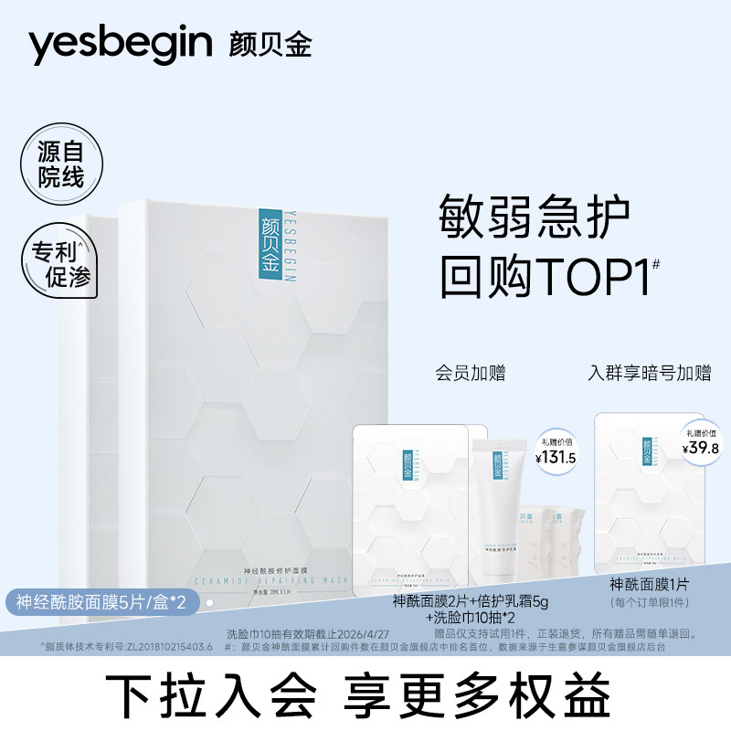 颜贝金神经酰胺修护面膜保湿温和敏肌效期至26年10月11日