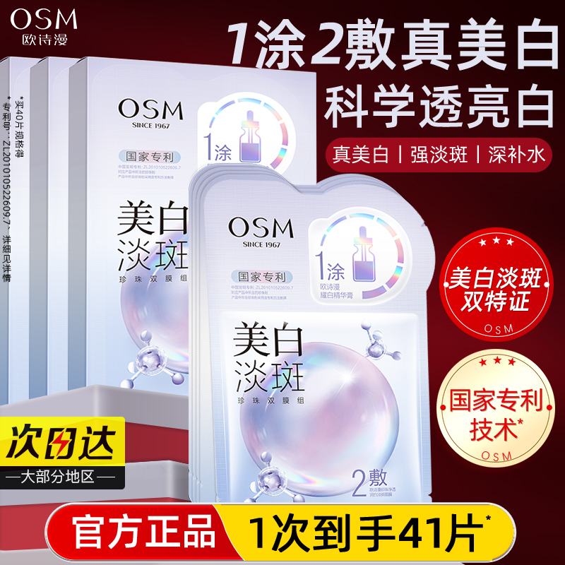 欧诗漫美白淡斑面膜补水去黄气暗沉珍珠提亮舒缓女正品官方旗舰店