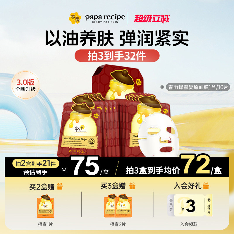 韩国原装红春雨蜂蜜复原面膜3.0滋养提拉10片淡纹补水紧致旗舰店