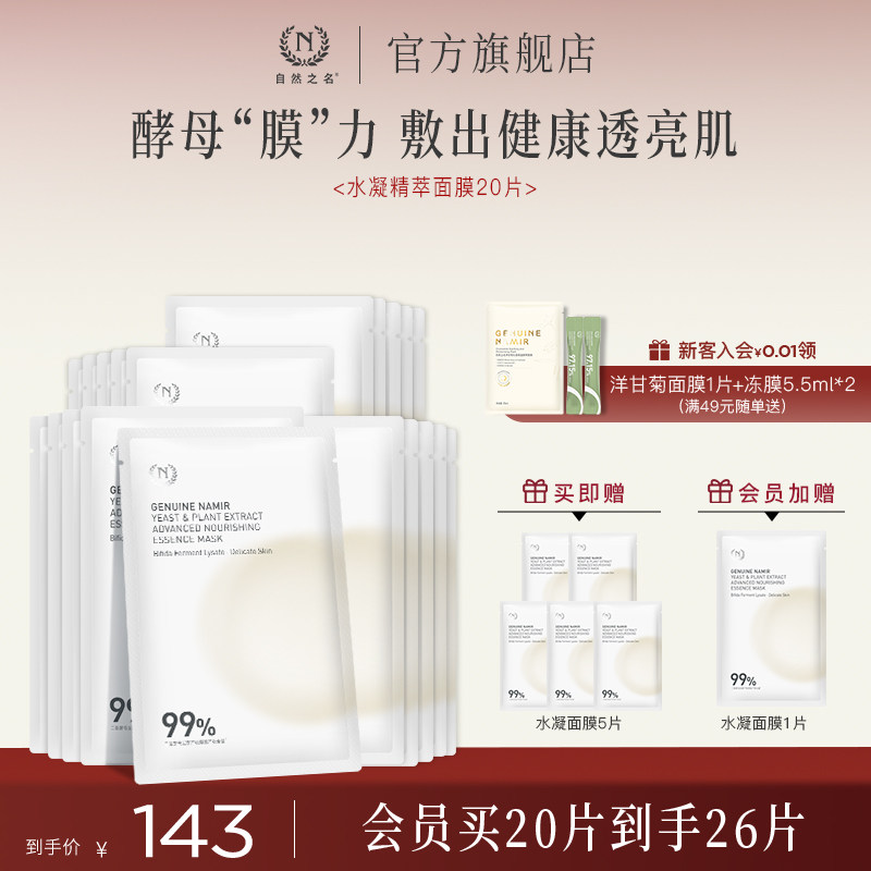 自然之名二裂酵母植萃卓能水凝精萃面膜补水保湿嫩肤精华贴片面膜