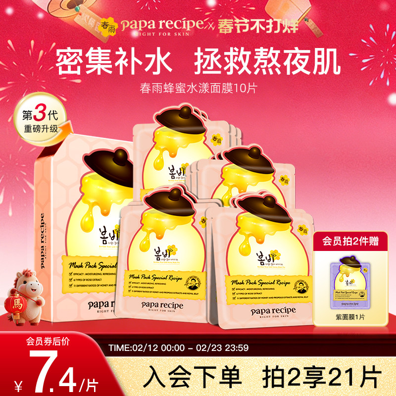 韩国paparecipe粉春雨蜂蜜水漾玫瑰面膜补水提亮肤色熬夜急救正品