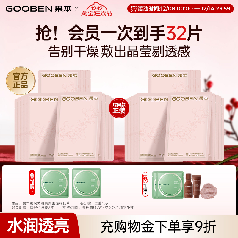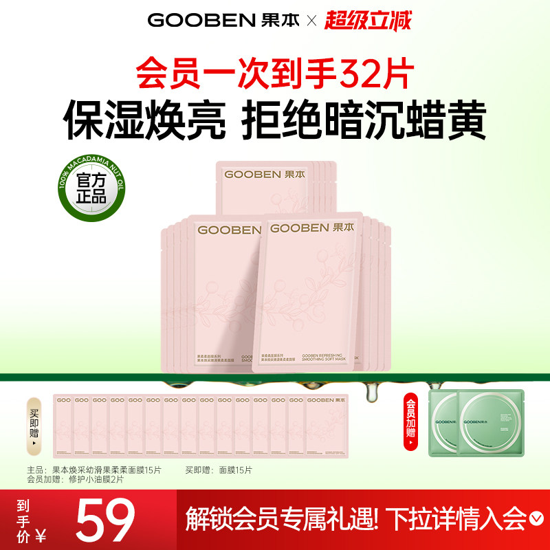 【入会解锁加赠】果本焕采嫩滑果柔柔面膜保湿烟酰胺焕亮补水提亮