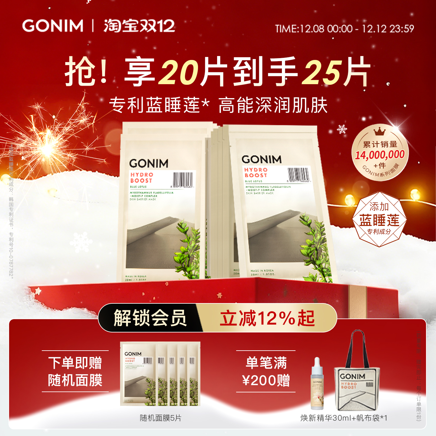GONIM高觅韩国复活草面膜补水保湿舒缓急男女救褪红修护去暗沉