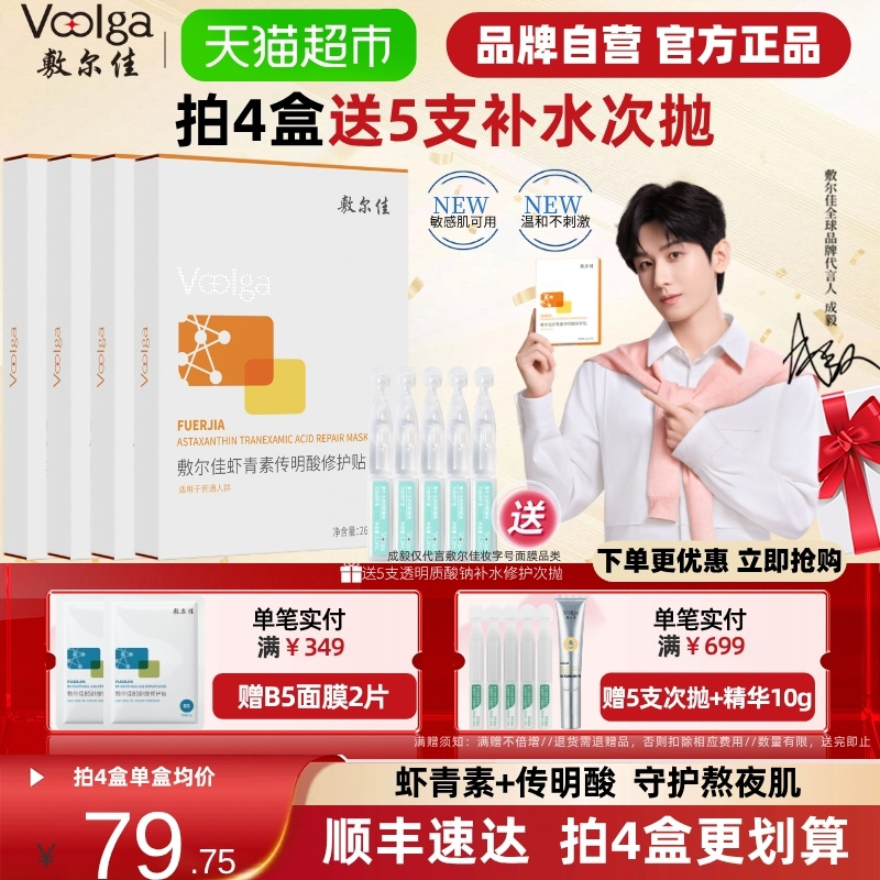 【品牌自营】敷尔佳灯泡膜虾青素传明酸补水保湿修护熬夜肌肤面膜